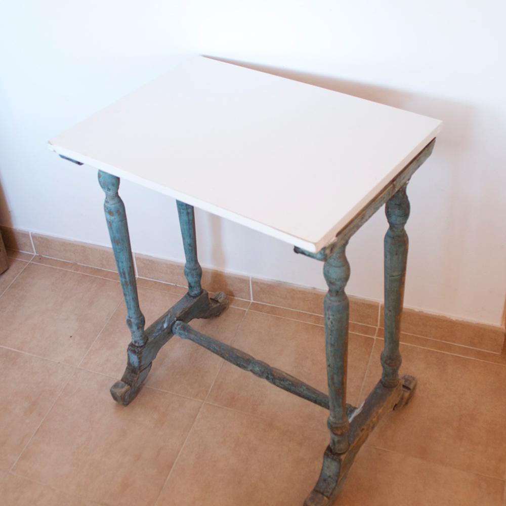 Para terminar la tabla de arriba desentonaba un poco y (milagro) encontré un bote de pintura de la Americana en azul – el mismo tono de azul – de hace casi 20 años. Le di unos toques por las esquinas y luego lo acabé todo con cera para protegerlo.